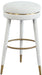 Liven up your breakfast nook with this Coral cream boucle fabric bar stool from Meridian Furniture. Its rich cream boucle fabric upholstery offers soft texture while you sit, and its swivel function allows you to twist and turn while you sit at the counter. This bar-height chair adds lift to your day while you swivel happily at your breakfast bar. It features brushed gold accents, giving it a contemporary design that complements any modern living space.