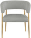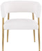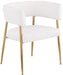 Enliven your dining area with the Creston linen textured fabric dining chair. Upholstered in rich durable linen textured fabric, this dining chair is not only stylish but also built to last. The brushed gold metal frame adds a touch of luxury, perfectly complementing its contemporary design. The curved back and plush cushioned seat ensure an inviting and comfortable dining experience. Whether it's for daily meals or special occasions, the Creston dining chair combines modern aesthetics with comfort.