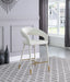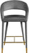 Settle in for a meal with friends seated in this Destiny stool. Soft upholstery makes this stool a sleek and inviting option for pairing with your favorite counter table. The rounded back adds comfort to mealtime and lends the stool a chic, eye-grabbing touch, while tapered legs topped with gold tips give the stool an elegant finish.