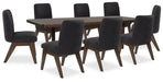 | Details | PCD857-35: Solid wood top frame, Tabletop and base made with hardwood solids, mango wood veneer and MDF substrates, Complex, rich warm brown finish, Heavy duty ball-bearing equalizing table glide system, Seats up to 8, Dining chairs sold separately, Assembly required, PCD857-01: Made with solid wood frame, Complex, rich warm brown finish, Polyester upholstery, Foam cushioned seat and back, Stylized bucket design, Assembly required, | |