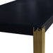 Introducing the Empire Dining Table, a stylish centerpiece for your dining area. Crafted with eco-friendly materials and a sleek black finish, this table exudes contemporary elegance while ensuring durability. Its gleaming gold tiered legs evoke the enchanting allure of a city skyline at night, adding a touch of glamour to your space. With seating for four, this fixed top table is perfect for intimate gatherings or family meals. Upgrade your dining experience with the Empire Dining Table, where lasting construction meets modern metro style for a captivating ambiance.