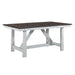 Sitting pretty with the Farmhouse five-piece trestle table set. Crafted of rubberwood solids and veneers, this kit includes the fixed-top trestle table and four Windsor back side chairs. The trestle table features a timeless heavy distressing with a two-tone and wood-tone with a planked top. The Windsor chairs, known for their comfort, feature nylon chair glides to protect your flooring and the same two-tone finish as the table.