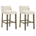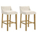 Fauna - Modern Transitional Wood Bar Height Kitchen Bar Stool (Set of 2) - Putty Brown Finish With White Boucle Fabric Upholstered Seat