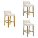 Fauna - Modern Transitional Wood Bar Height Kitchen Bar Stool (Set of 3) - Putty Brown Finish With White Boucle Fabric Upholstered Seat