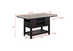Bring a fresh look to your dining space with this breezy counter height group. The table has an array of design features, including drawers, bottle storage, and an open bottom shelf. Ladderback chairs and bench are upholstered in a Chevron pattern fabric with piping detail.