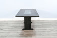 This stunning dining table combines the sleek elegance of black wire-brushed mindi solids and veneers with practical functionality. Its honeycomb tile insert serves as a heat-resistant surface, perfect for placing hot plates and dishes without worry. The table's black finish exudes a modern sophistication while the wire-brushed texture enhances the natural grain of the mindi wood, adding depth and character to its appearance.