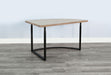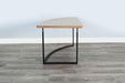 • A blend of a natural wood top and minimalist black metal frame creates a sleek, sophisticated look.