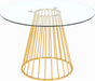 Add a bold touch to your dining area with this chic Gio dining table. Featuring a round, clear tempered glass tabletop and a polished metal base with a wired contemporary design, this dining table transforms your dining space into a stylish haven.