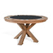 Host your game nights in style with this dual-function round poker and dining table. Crafted with a natural wood finish and supported by a striking X-shaped pedestal base, this table effortlessly transforms from a sophisticated dining surface to a game-ready poker table. The reversible top reveals a felt-lined gaming surface complete with built-in cup holders and chip trays for maximum convenience. Blending elegance with functionality, it’s perfect for entertaining guests and enhancing any living or game room space.