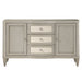 Give your dining space a much-needed storage solution with the Elyssa server. This server features three ample drawers and two side cabinets for all your extra dishware, glassware, and linens. The drawers showcase synthetic leather quilted drawer fronts. The piece sits on eight beautifully crafted fluted wooden legs. It is finished in a champagne color that adds a stylish touch.