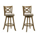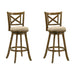 Kodi - Modern Farmhouse Swivel Wood Bar Height Kitchen Bar Stool (Set of 2) - Sepia Brown Finish With Light Scone Fabric Upholstered Seat