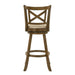 The Kodi Barstool Collection captures the warmth of classic design with the durability and comfort required for modern living. Its elegant X-back frame and gently curved legs bring a timeless farmhouse charm, while the sleek round seat and 360-degree swivel base add functionality for everyday use. Whether placed at a kitchen island or a home bar, Kodi delivers a perfect balance of style, comfort, and craftsmanship. Built from solid natural wood with a rich Sepia Brown finish, each stool showcases a warm tone that enhances natural wood character while offering strength and long-lasting performance. The upholstered seat is available in Static Gray or Light Scone—two versatile, neutral fabric options that pair beautifully with the finish and easily blend with a variety of color palettes. The performance-grade fabric offers soft comfort while resisting wear, helping maintain its appearance through years of use. The 360-degree swivel seat allows for smooth rotation, making conversation easy and movement effortless, while the circular footrest provides added support for relaxed sitting. Its rounded seat with thick foam padding ensures consistent comfort during long gatherings. Designed for convenience, the stool is available in Counter Height and Bar Height, fitting seamlessly into casual dining spaces and kitchen setups alike. Assembly is simple, requiring minimal effort with all hardware included. The Kodi Barstool Collection is backed by a 1-year limited manufacturer warranty, guaranteeing dependable quality. Perfect for rustic, transitional, or farmhouse interiors, Kodi brings enduring character and functionality to every space.