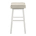 Lenon - Modern Farmhouse Wood Bar Height Kitchen Bar Stool - White Finish With Cream Fabric Upholstered Seat