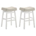 Lenon - Modern Farmhouse Wood Bar Height Kitchen Bar Stool (Set of 2) - White Finish With Cream Fabric Upholstered Seat