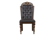 The Royal Classics Maximus Dining Side Chairs (Set of 2) in cherry are a perfect blend of heirloom craftsmanship and timeless design. Meticulously crafted from solid poplar and premium birch veneers, these chairs are built for long-lasting beauty and durability. The multi-step cherry finish enhances the natural wood grain, while delicately burnished gold tipping adds a luxurious touch to the intricate carvings. Inspired by Baroque and Rococo styles, the ornate detailing brings an air of regal elegance and sophistication to your dining space. Upholstered in sumptuous chocolate brown vegan leather, the button-tufted backs and plush cushions offer both an elegant look and supportive, comfortable seating for a truly luxurious dining experience.