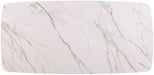 Make even the most casual meals an elegant affair when guests gather around this Niya dining table. This handsome table is part art, part dining room must-have, with its elegant yet durable marble-look sintered stone top and its brushed curve bases. Diners have loads of elbow room at this large dining table, so they stay cozy from appetizers through dessert. Add the chairs of your choice for a complete dining room rehab in an instant.