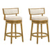 Noely - Modern Farmhouse Swivel Wood Counter Height Kitchen Bar Stool (Set of 2) - Amber Glow Finish With White Boucle Fabric Upholstered Seat