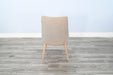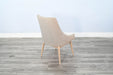 This chair seamlessly combines contemporary style with classic comfort. The light grey upholstery not only adds a touch of modern elegance but also effortlessly complements a variety of decor styles. The wheat-colored wood legs provide a warm and inviting contrast, adding a natural element to the overall design. Crafted with both aesthetics and comfort in mind, the chair boasts a plush seat and a supportive backrest for a delightful dining experience.
