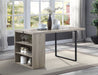 Smartly designed the Patwin dining table is perfect for rooms where space is limited, ideal for the kitchen or breakfast nook. The table features two built-in shelving for displaying decorative pieces or storing and organizing spices, utensils, or cookbooks. The gray oak and black finish make for a contemporary piece that will work with various aesthetics.