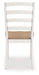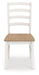 | Details | Made with solid wood frame, Seat with light butcher block oak veneer, Frame with antiqued white finish, Ladderback design, Contoured seat for added comfort, Assembly required | |
