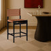 Sleek and contemporary, Rawlins counter stool in soft vegan leather makes a bold statement in any dining space. With a black ash wood frame and durable upholstery, it's as sturdy as it is glamorous. Elevate every meal with the effortlessly chic appeal of this modern stool.
