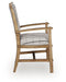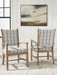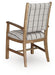 Rustic character with a dash of refinement. Outfitted with trendy plaid upholstery and completed with a natural finish, this dining arm chair combines the authentic beauty of wood with the must-have function of performance fabric. Loaded with charm, it completes your dining space with modern farmhouse flair.
