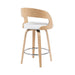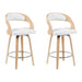 Shelly - Modern Counter Height Swivel Bar Stool (Set of 2) - Patterned Oak Finish With White Faux Leather Upholstered Seat