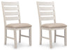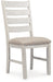 | Details | Made of wood and engineered wood, Distressed grayish white finish, Cushioned seat with polyester upholstery, Tall ladderback design, Assembly required | |