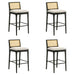 Tobias - Coastal Modern Wood Bar Height Kitchen Bar Stool (Set of 4) - Black Finish With White Boucle Fabric Upholstered Seat