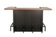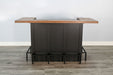 Bring the bar experience home with this industrial U-shaped bar counter. Designed for entertaining, it features a raised wood bar top, sleek black frame, and ample storage below. Two drawers, four open shelves, and an integrated stemware rack provide space for everything from cocktail tools to glassware. A built-in metal foot rail completes the look while adding comfort for guests. Perfect for basements, game rooms, or stylish dining spaces.