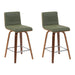 Vienna - Modern Counter Height Swivel Bar Stool (Set of 2) - Vintage Green Upholstered Seat And Walnut Finished Wood Frame