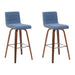 Vienna - Modern Swivel Bar Height Stool (Set of 2) - Vintage Blue Upholstered Seat And Walnut Finished Wood Frame
