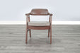 A sleek fusion of form and function, this solid wood arm chair brings mid-century modern charm to any dining or accent space. The sculpted frame and low-profile arms offer a refined silhouette, while the padded seat cushion provides everyday comfort. Crafted from solid wood with visible grain detailing, this piece is perfect for dining tables, office nooks, or lounge corners.