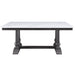 Gracefully crafted from wood in a muted, earthy gray oak finish, the dining table features a sturdy trestle base inspired by classical architecture aesthetic. White artificial marble top on the wooden frame creates a stunning two-tone design, providing timeless beauty. The rectangular dining table easily seats six people comfortably and allows your guests to enjoy their meals without feeling cramped.