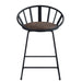 Introducing the stylish and comfortable Zudora counter height chairs that combine modern design with vintage-inspired details. The rounded seat of the chair provides a comfortable and ergonomic seating experience. It is upholstered with synthetic leather, which mimics the look and feel of aged leather, adding a touch of nostalgia and rustic charm. The slatted backrest enhances the chair's visual appeal and provides ample support for your back. The slats not only add a decorative element but also promote airflow, ensuring a comfortable seating experience even during longer periods.