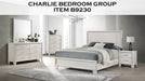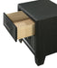 This elegant bedroom collection presents a sophisticated ensemble perfect for creating a refined modern aesthetic in your sleeping quarters. The suite features a sleek, minimalist design with crisp, clean lines and a rich finish that exudes contemporary charm. Anchoring the set is a robust panel bed with a prominent headboard, promising a sturdy and stylish centerpiece. Flanking the bed are complementary case pieces, offering ample storage with their smooth-gliding drawers accented with chic silver-toned hardware.