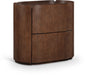 Everything you need at night is easily within arm's reach when you bring home this Everett nightstand. Its rich finish and oak veneer exude modern sophistication, complemented by a contemporary design with a raised edge around the perimeter of the top to keep everything in place. Perfect for bedside essentials, it blends practicality with style, offering ample storage and a sleek surface for lamps or decor. Enhance your bedroom with this functional yet elegant piece that combines timeless aesthetics with everyday convenience.