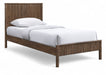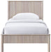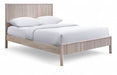The sturdy Kivo solid wood bed in a rich finish brings timeless warmth to your bedroom. Vertical slatted detailing across the headboard and footboard adds a striking mid-century touch while keeping the look clean and modern. Built from solid wood, this piece blends durability with understated sophistication for a bed that anchors the room with style.