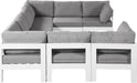 Nizuc - Outdoor Patio 8 Piece Modular U-Shaped Sectional With White Frame - Gray