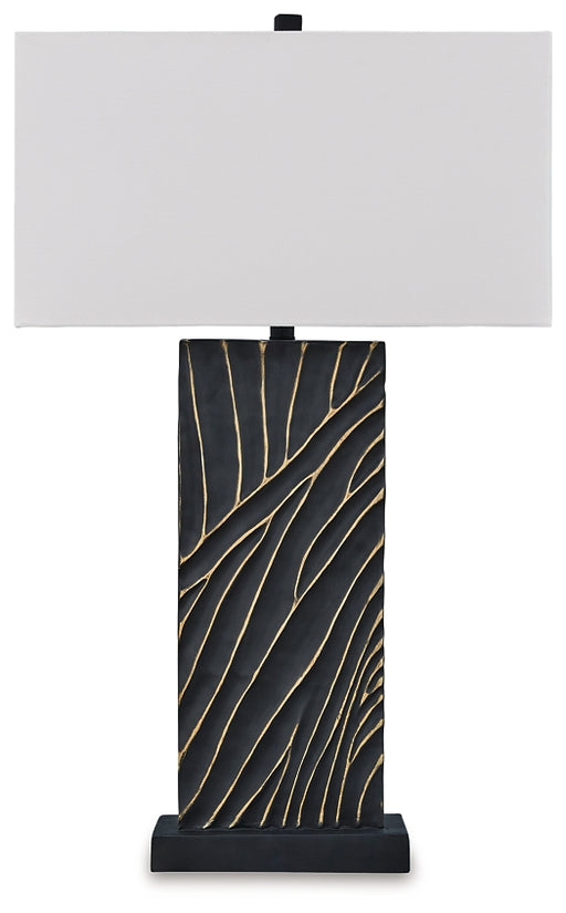 Signature Design by Ashley®Kick your style up a notch with this table lamp. The impressive black base boasts textured detail enhanced with striking gold accents for sophistic...