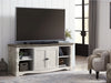 | Details | Made of pine wood, pine veneers and engineered wood, Two-tone distressed finish: weathered gray top; vintage white base, TV stand with 2-door cabinet with single-shelf storage and 2 open shelves, Aged iron-color hardware, Cutouts for wire management, Assembly required | |