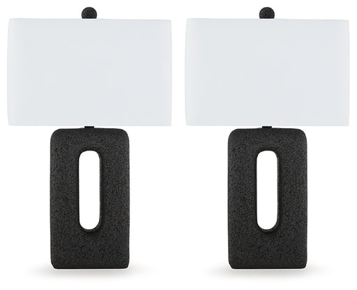 Signature Design by Ashley®These sculptural table lamps are an enlightening choice for those with an eye for clean-lined, modern design. The textured cutout base and sleek re...