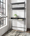 Elevate your home office with this simply sensational desk and shelf. Pairing a dark wood grain look with a black metal frame for modern appeal, the minimalistic desk provides a convenient work surface with incorporated cubby shelves (with cutout for wire management) and two upper shelves for extra storage and display space. Its open-concept design, sleek aesthetic and built-in charging ports help you make the most of small space living.