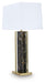 A little glam goes a long way. This table lamp embraces the best of contemporary style with its hard-to-miss sleek black marble base and glimmering goldtone accents. How divine on a mantel, dining server or home office desk.