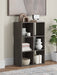 Details Made with engineered wood (MDF/particleboard/plywood) and decorative laminate for the right balance of affordability and durability, Dark charcoal finish over replicated oak grain with authentic touch, Decorative laminate replicates natural or man-made material surfaces with consistent color, pattern and texture, Accommodates any 10.5" W x 10.5" D x 11" H storage bin (not included), Assembly required