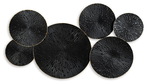 Signature Design by Ashley®Round out your contemporary space with this forward-thinking wall sculpture. Circles in varying textures and sizes are simply striking when paired ...