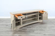 - Two-tone finish with a light wood top and painted base adds modern farmhouse charm