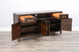 Introduce a touch of iconic mid-century modern style to your living space with our exquisite TV console featuring two cabinets, two drawers, and opulent gold hardware. Crafted to embody the essence of sleek sophistication, this console seamlessly combines form and function. The two cabinets and two drawers offer ample storage to neatly tuck away media accessories, while the luxurious gold hardware accents infuse a hint of elegance and luxury into its design.