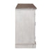 The tranquility of the sea and the charm of a cozy cottage harmonize in Ocean Isle. Ocean Isle creates incomparable style by combining coastal and cottage elements. Authentic pine veneers work well with the finish to create a two tone natural look. This collection features louvered panel as well as x motif accents highlighted by satin nickel cup pull hardware. Elegantly styled and casually proportioned Ocean Isle works in a dining room as well as for a kitchen dining combination.