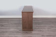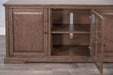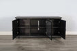Bring timeless charm and practical storage into your home with this versatile wooden console. Crafted from durable wood with a finish, this piece blends classic design with modern functionality. The two side cabinets feature paneled wood doors for concealed storage, while the center showcases framed glass doors that highlight your favorite décor, media components, or dinnerware. Inside, adjustable shelving provides customizable organization, and the back panel includes a cord management slot to keep wires tidy. Perfect for use as a TV stand, dining sideboard, or entryway console, this piece is as stylish as it is functional.